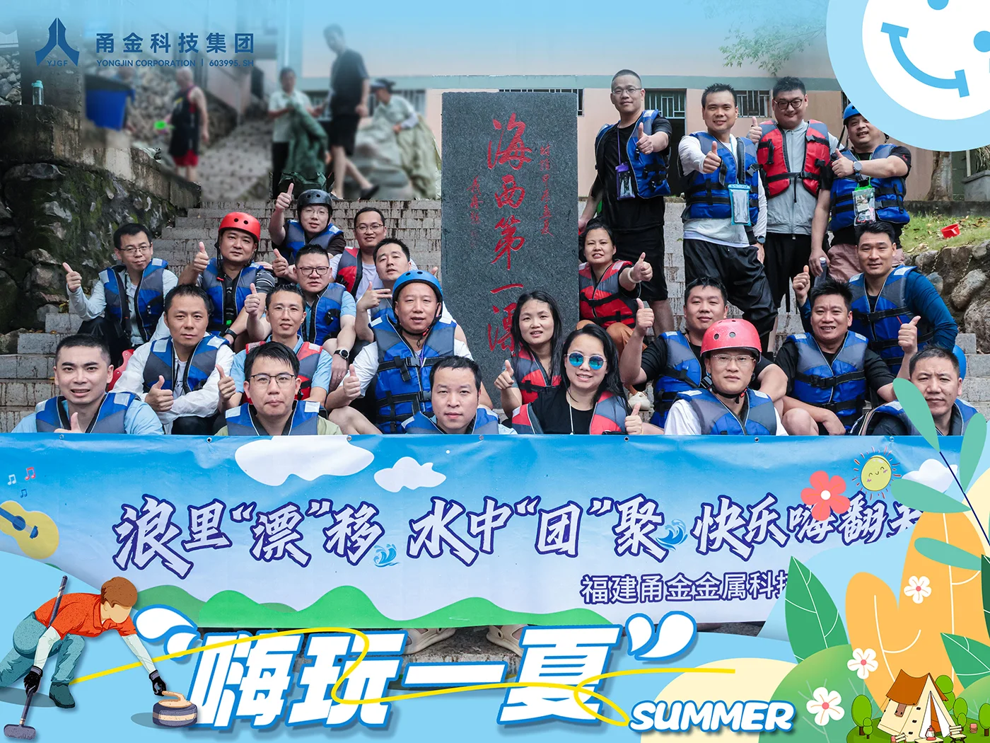 福建甬金管理团队在福州永泰开展了以“趣团建 激流勇进 智壶未来”为主题的团建活动。此次活动通过激情漂流与智慧冰壶的融合体验,旨在提高团队凝聚力,赋能战略协作,为下半年产能销量目标的达成蓄势聚力。